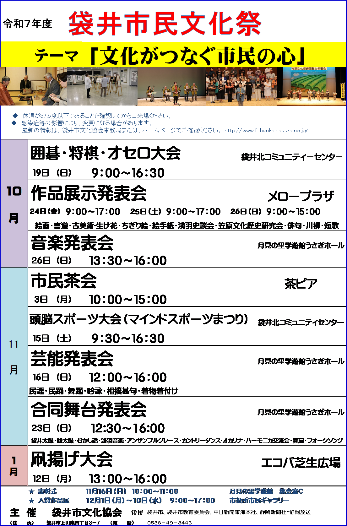 今年も10月から市内各地で袋井市民文化祭が開催されます。